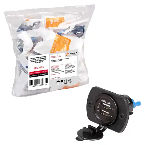 розетка USB! встраиваемая влагозащ. с 2 портами (5В, 2.1А + 2.1А) (В пакете) AEBJ205 AIRLINE